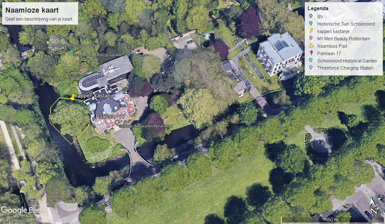 Baden Powelllaan 2, 3016GJ, kappen van drie bomen volgens BVC Centrum. Specifieke locaties: Heemraadssingel, Baden Powelllaan, Park. Aanvr. en tek. zijn bijgevoegd (aanvraagdatum 04-10-2021, ).