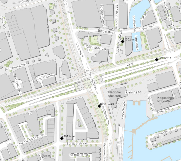 Toni Koopmanplein 6, 3014RT, kappen van 18 bomen. Specifieke locaties: Korte Hoogstraat, Schiedamsedijk, Hooimarkt, West-Kruiskade, Museumpark, Brouwerijstraat, Schiedamse Vest, Blaak, Calandstraat, Westerkade, Park, Toni Koopmanplein, Parkkade. Aanvr. en tek. zijn bijgevoegd (aanvraagdatum 09-09-2022, ).
